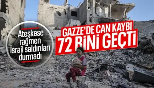 Gazze Şeridi’nde ateşkes anlaşmasına rağmen devam eden saldırılar nedeniyle can kaybı artmaya devam ediyor. Son 24 saat içinde bir kişinin daha yaşamını yitirmesiyle toplam hayatını kaybedenlerin sayısının 72 bin 70’e ulaştığı bildirildi.