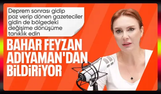Gazeteci Bahar Feyzan, 6 Şubat depremlerinin ardından depremden etkilenen illerde yapılan çalışmalara değindi. Bakan Murat Kurum’un kendisini bu işe adadığını söyleyen Feyzan, “Erdoğan’a bölgede olan sempati ve teveccüh her geçen gün artıyor” dedi.