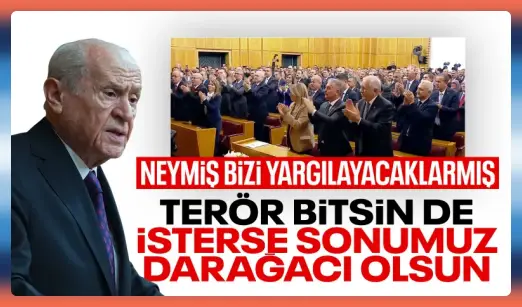 Partisinin grup toplantısında Terörsüz Türkiye sürecine dair önemli mesajlar veren Devlet Bahçeli, “Neymiş bizi yargılayacaklarmış, neymiş suç işliyormuşuz. Siz yargılasanız yargılasanız cukka düşkünlüğünüzü yargılarsınız.” dedi.