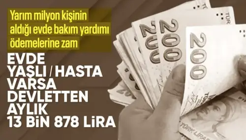 Dar gelirli ailelere ve bakıma muhtaç engelli bireylere yönelik evde bakım yardımı 2026 yılı itibarıyla artırıldı. Memur maaş katsayısına bağlı olarak güncellenen sosyal destek kapsamında, evde bakım aylığı 11 bin 702 TL’den 13 bin 878 TL’ye yükseltildi.