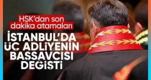 HSK kararnamesiyle, İstanbul Anadolu Cumhuriyet Başsavcılığına Fatih Dönmez, Bakırköy Cumhuriyet Başsavcılığına Barış Duman ve Beykoz Cumhuriyet Başsavcılığına Harun Bulut atandı. Hakim ve Savcılar Kurulu (HSK) Kararnamesiyle, bazı değişimler yaşandı. Yayınlanan kararnameye göre İstanbul’da 3 adliyenin başsavcısı değişti. HSK Birinci Dairesince; İstanbul Anadolu, Bakırköy ve Beykoz cumhuriyet başsavcılıklarında değişikliğe gidildi. HANGİ …