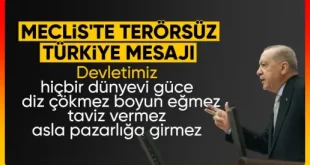 TBMM açılışında konuşan ve buradan ‘Terörsüz Türkiye’ye ilişkin net mesaj veren Cumhurbaşkanı Erdoğan, Türkiye Cumhuriyeti Devleti’nin hiçbir dünyevi güç karşısında diz çökmeyeceğinin, egemenliğini asla pazarlık konusu yapmayacağının altını çizdi. Cumhurbaşkanı Recep Tayyip Erdoğan, Türkiye Büyük Millet Meclisi’nde (TBMM), 28’inci dönem 4’üncü yasama yılının başlaması nedeniyle düzenlenen törende açılış konuşması gerçekleştirdi. …
